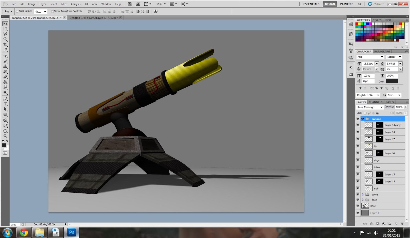 Here you can see I have started to paint a solid colour over each section of the cannon.